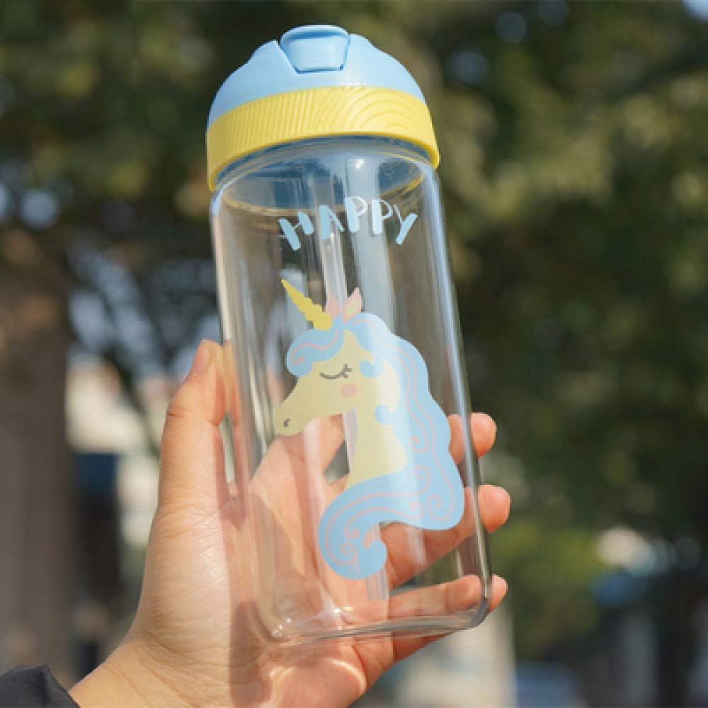 Yylikehome New 500ml Cute Cartoon Unicorn Glass Water Bottle With