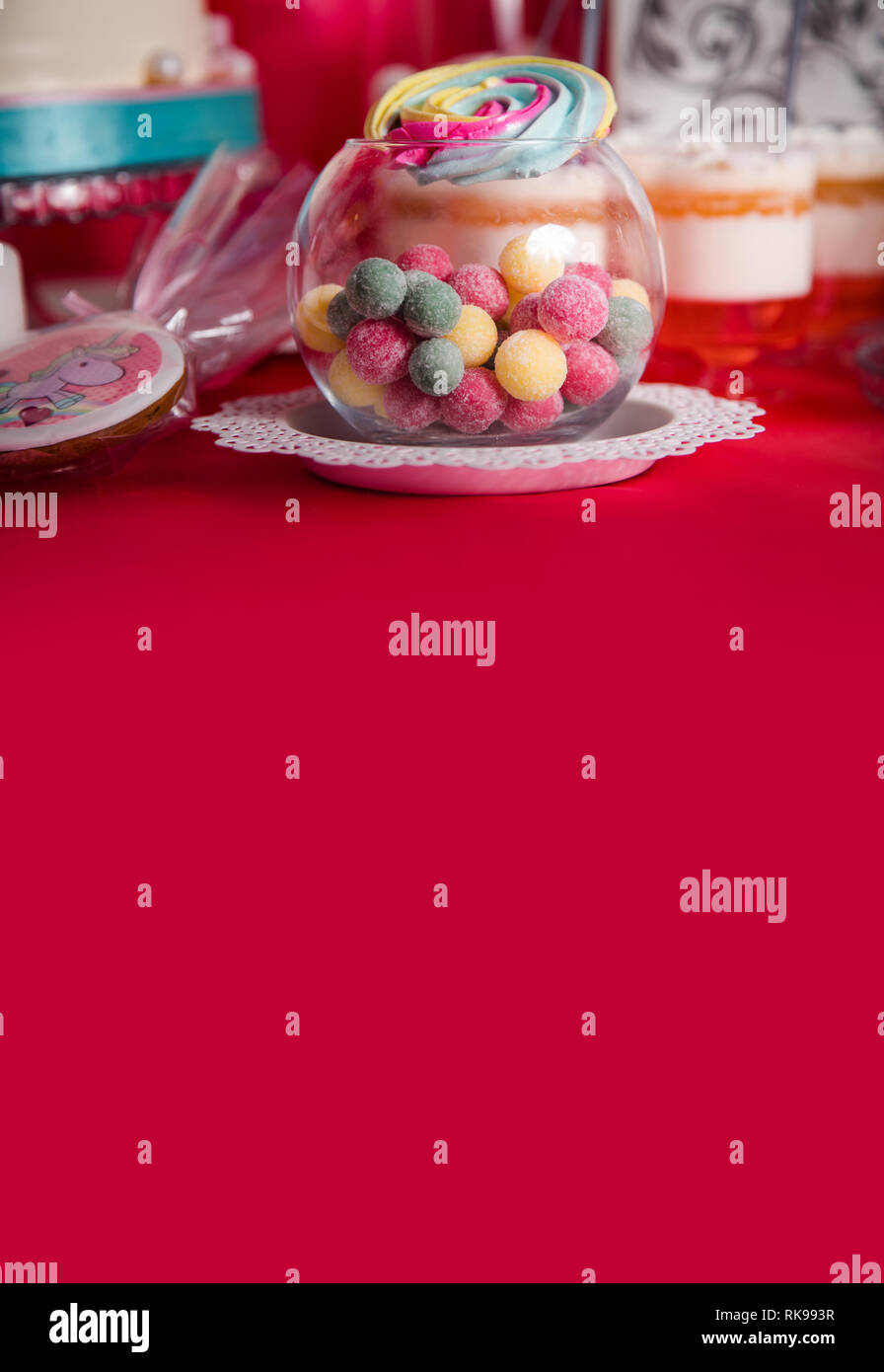 First Baby Girl Birthday Party Concept Candy Bar With Sweet