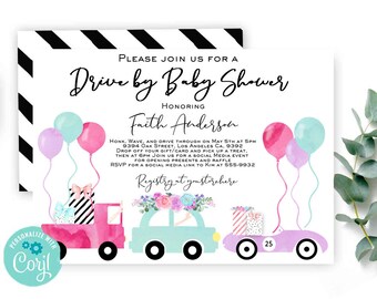 Editable Drive By Baby Shower Invitation Blue Floral Drive Through
