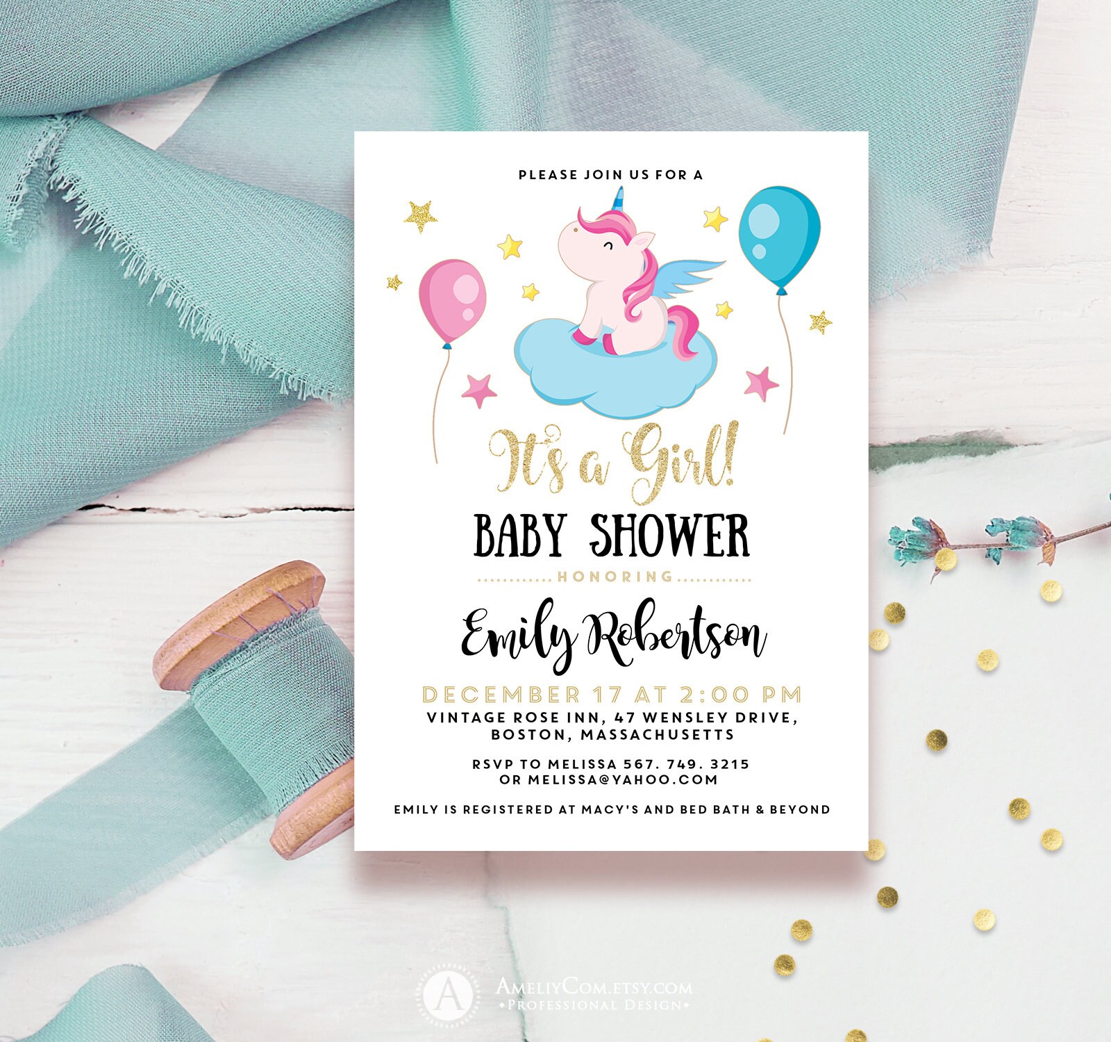 Unicorn Baby Shower Invitation Baby Girl Invite Unicorn Invite