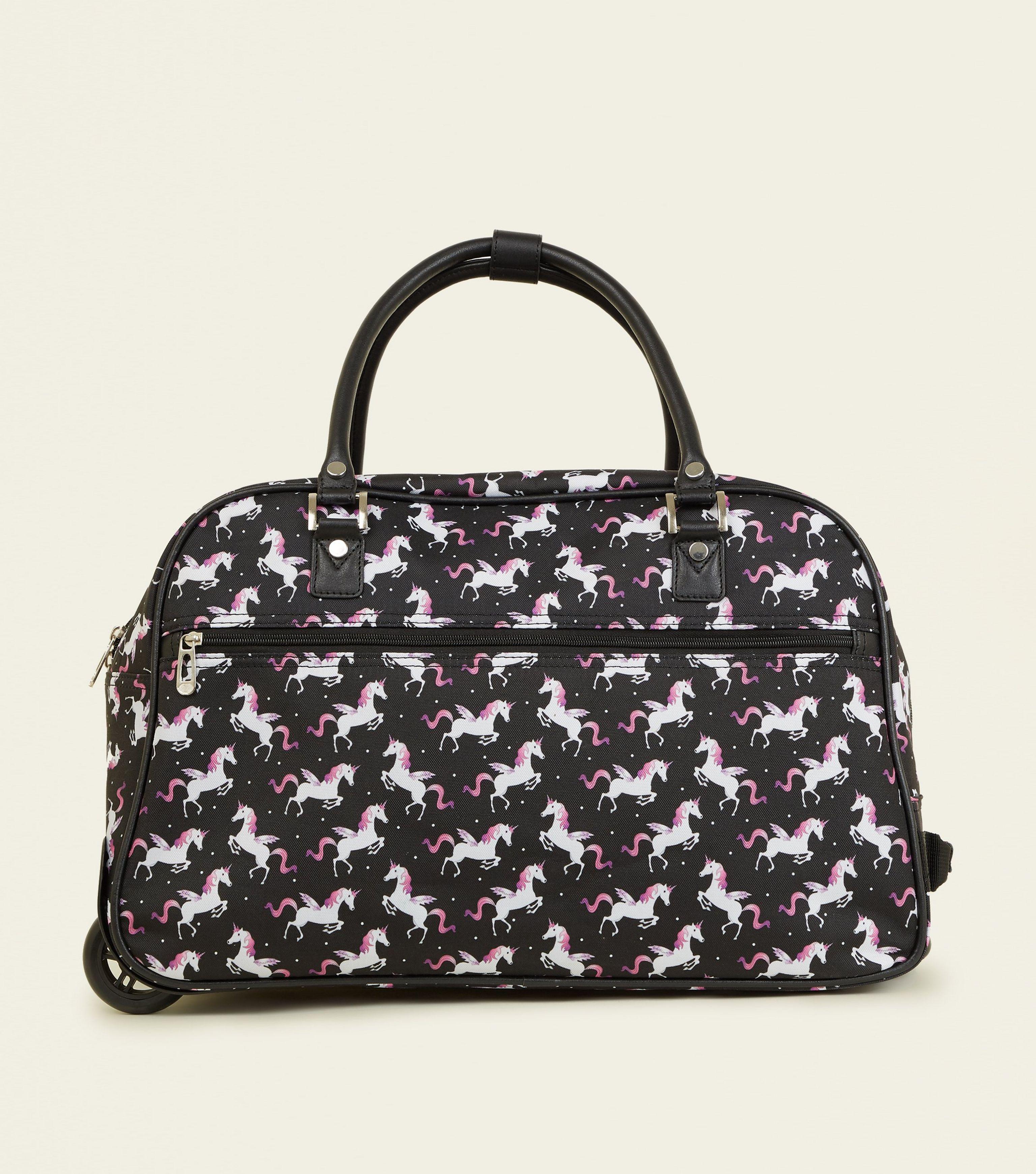 New Look Synthetic Black Unicorn Print 2 Wheel Holdall Lyst