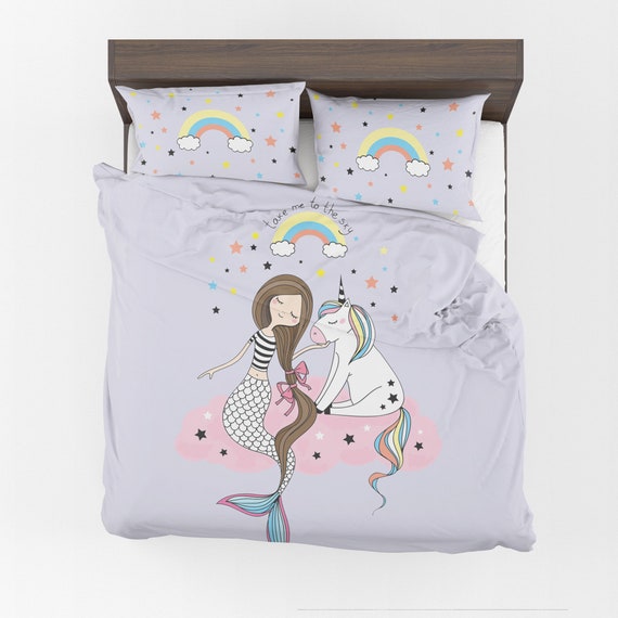 Mermaid Unicorn Duvet Cover Girls Bedding Unicorn Twin Duvet Etsy