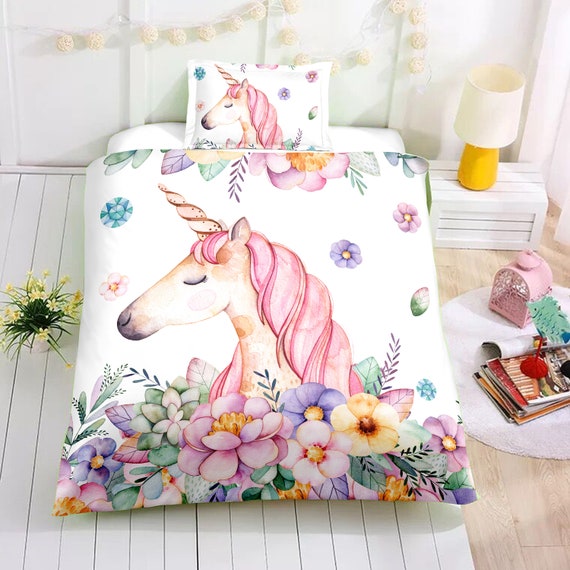 Unicorn Floral Duvet Cover Unicorn Duvet Cover Set Floral Etsy
