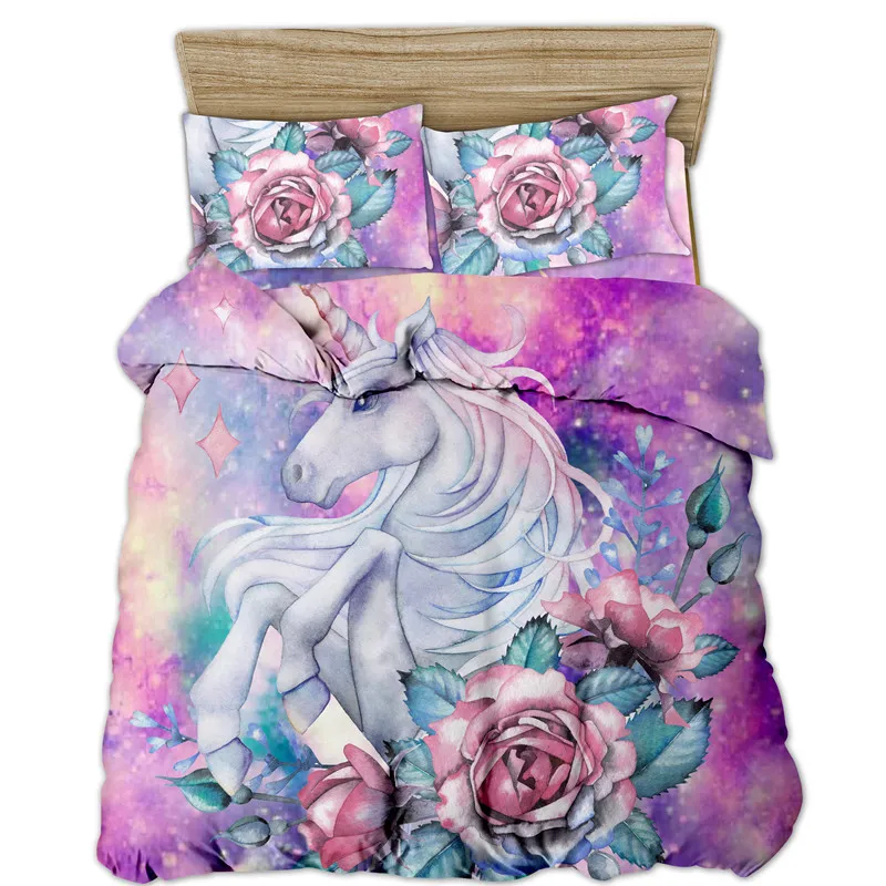 New Unicorn Bedding Set Quilt Cover Fitted Bedsheet Pillow Cases