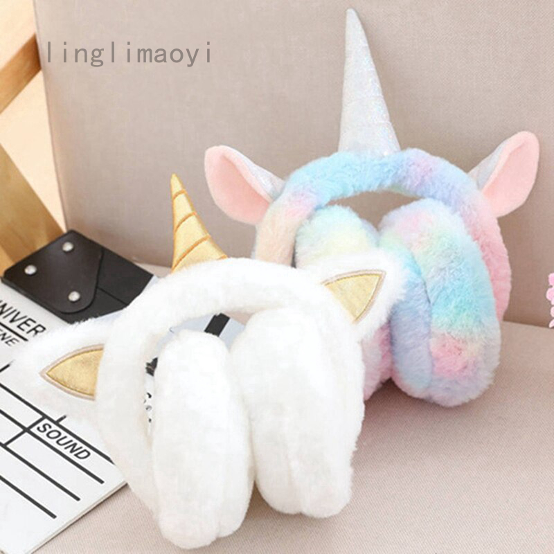 Linglimaoyi Warm Unicorn Headphones For Girls Winter Fur Ear Muffs