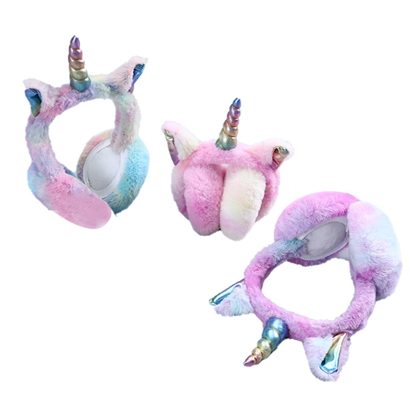 Women Rainbow Unicorn Earmuffs Winter Warm Plush Ear Muff Warmer