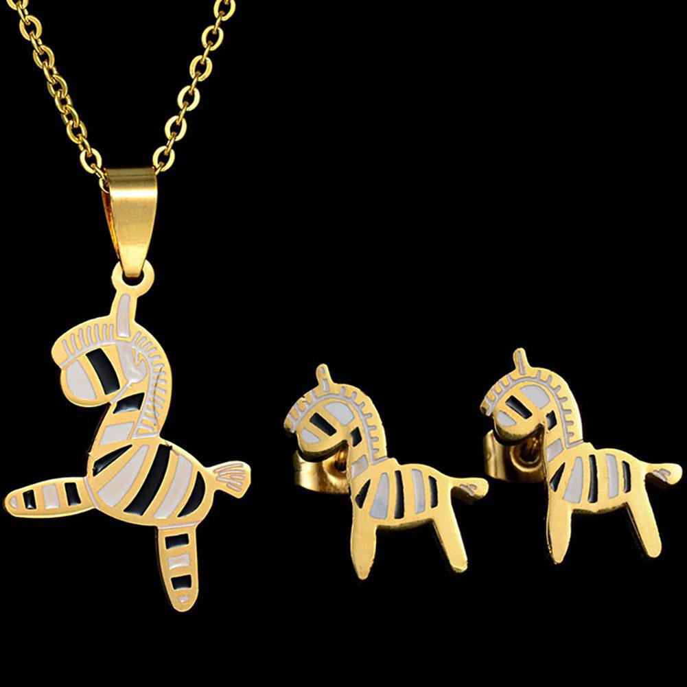 Pst Fashion Cute Unicorn Titanium Steel Necklace Stud Earrings
