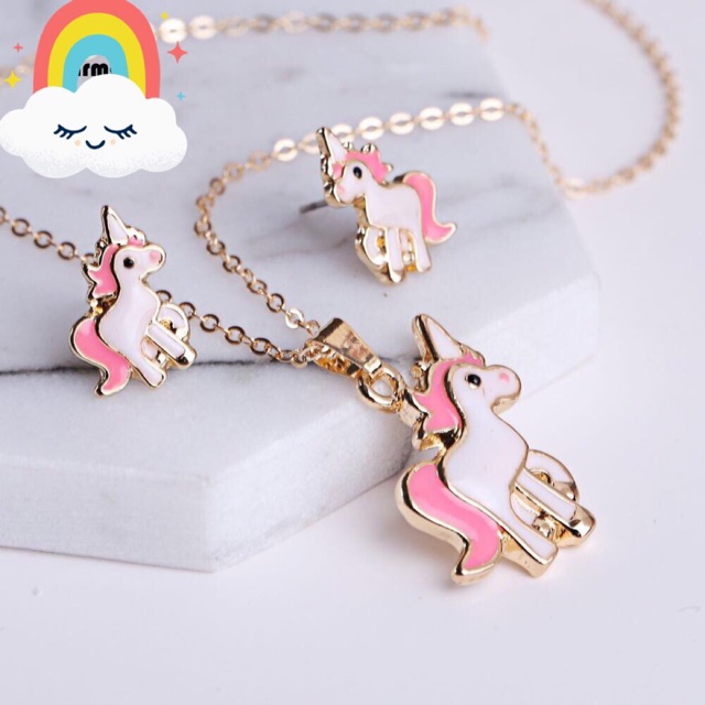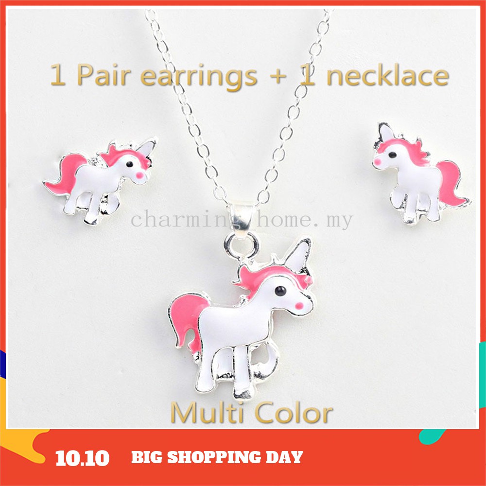 Unicorn Earrings And Necklace Set Shopee Philippines