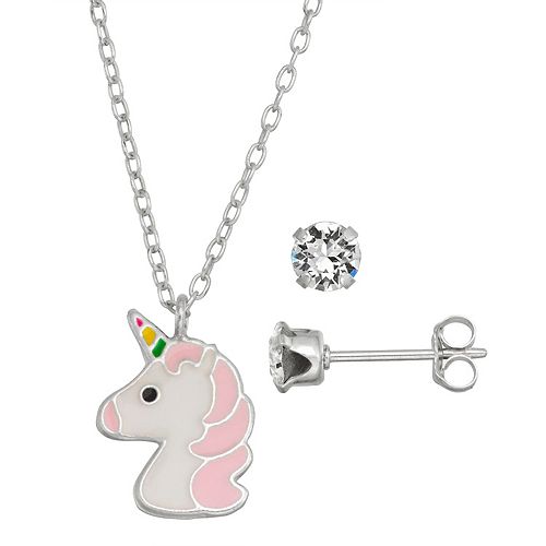 Amazon Com 925 Sterling Silver Pink White Unicorn Jewelry Set