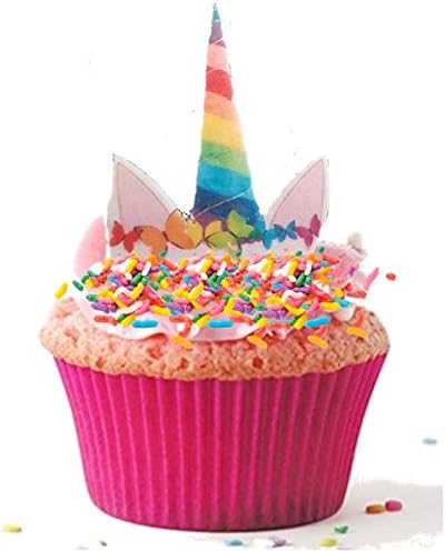 12 Pre Cut Edible Standing Rainbow Unicorn Horn And Ears Cupcake