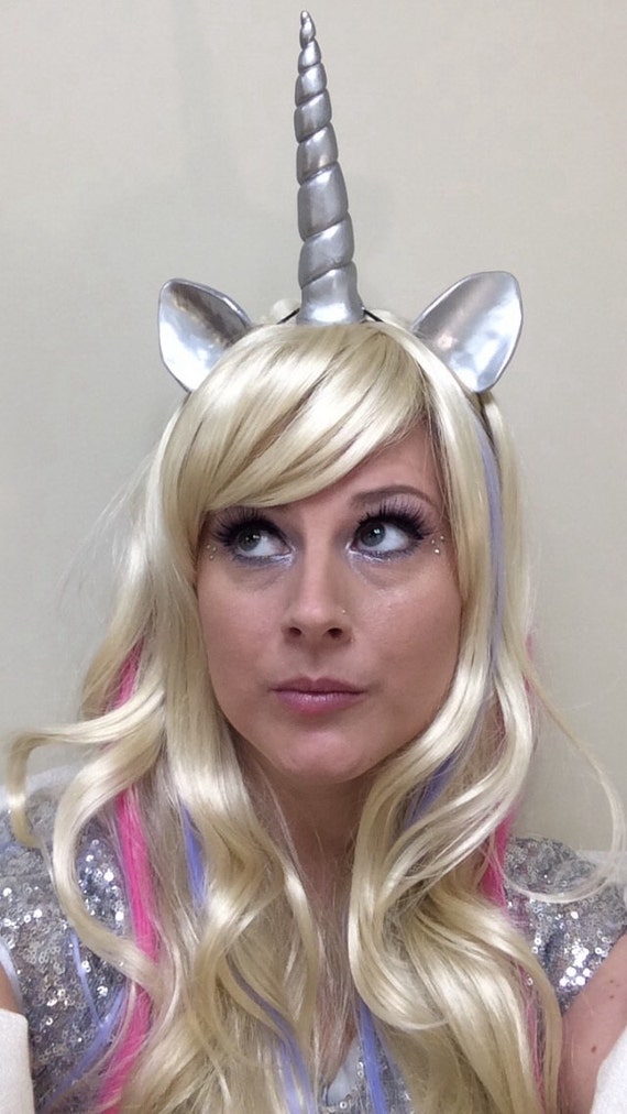 Headband Unicorn Horn And Ears In Pink Or Silver Alice Band Head