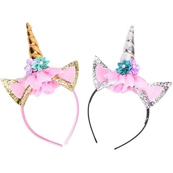 Amazon Com 2 Pack Unicorn Horn Headband Flowers Ears Headbands
