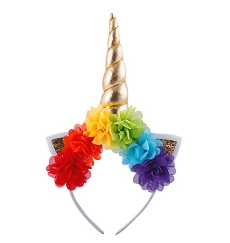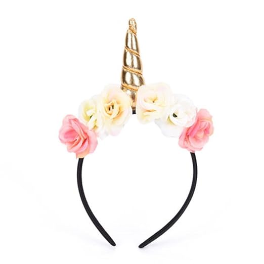Amazon Com Kids Girls Unicorn Headband Gold Horn Ears Flower