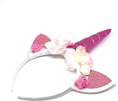 Amazon Com Albertino Pink Unicorn Horn Headband With Flowers And