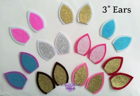 3 Felt Glitter Center Unicorn Ears Diy Supply Craft Etsy