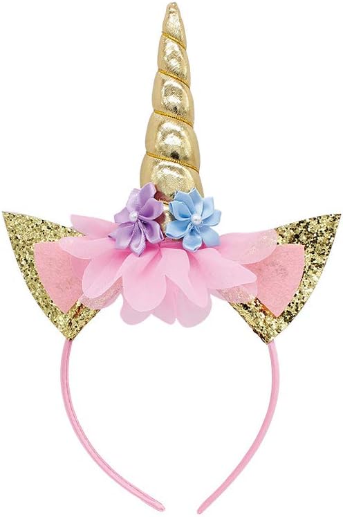 Gyt Unicorn Horn Hair Hoop Chiffon Flowers Glitter Ears Children