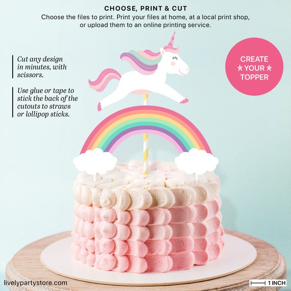 Unicorn Cake Topper Rainbow Centerpiece Printable Pdf File Etsy