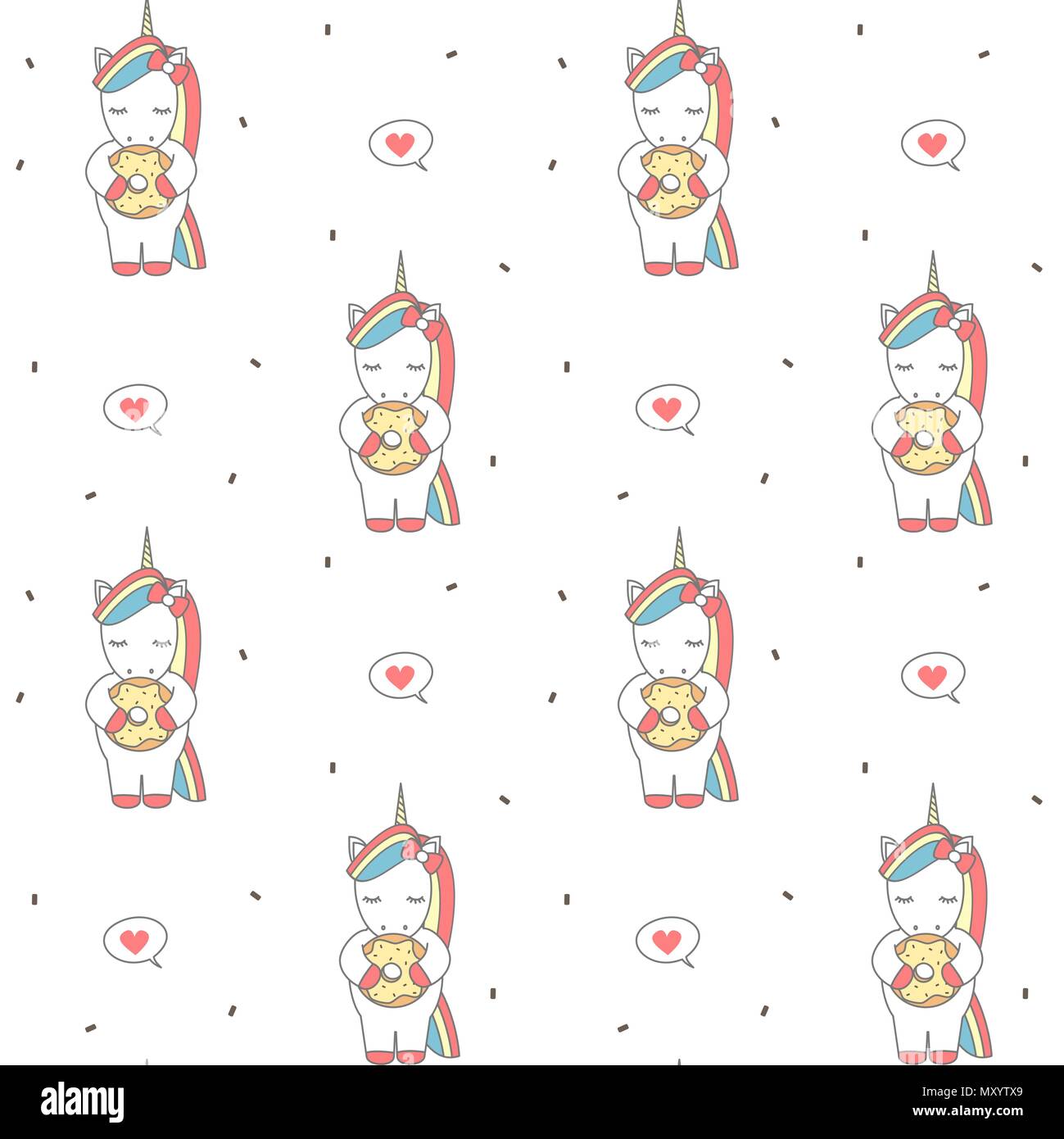 Cute Fat Unicorn Eating Donut Cartoon Stock Vector Royalty Free