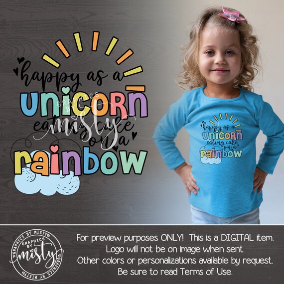 Happy As A Unicorn Eating Cake On A Rainbow Digital Transfer Etsy