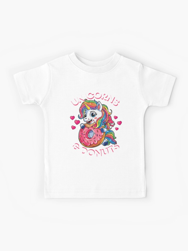 Doughnicorn Unicorn Eating Donut T Shirt Girls Kids Rainbow Squad