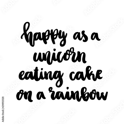 The Hand Drawing Ink Quote Happy As A Unicorn Eating Cake On A