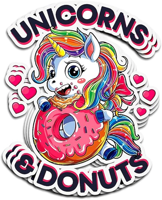 Amazon Com Hanabi 3 Pcs Stickers Doughnicorn Unicorn Eating Donut
