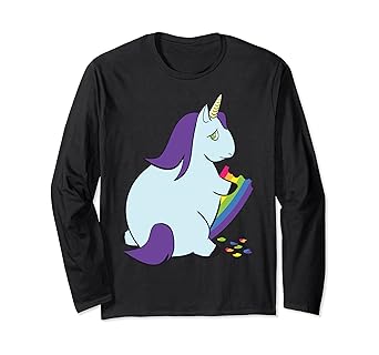 Amazon Com Chubby Unicorn Eating Rainbow Long Sleeve T Shirt