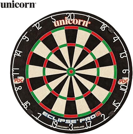 There is only one dartboard the eclipse pro from unicorn that is chosen year after year by the pdc to be used exclusively in all televised tournaments around the world. Its ideal for professional players and avid dart enthusiasts. Set up your own dart station at home with this unicorn eclipse pro 2 bristle dartboard. 2 increased playing area to 25.