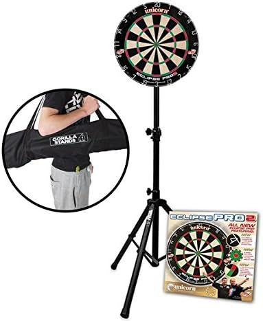 Get it fri jul 24 tue jul 28. Unicorn dartmate tri stand portable dartboard stand. The unicorn eclipse pro 2 dartboard is a championship quality bristle dartboard with tournament regulation segments and staple free construction. Unicorn eclipse pro 2 dartboard gorilla arrow pro portable dart board stand.