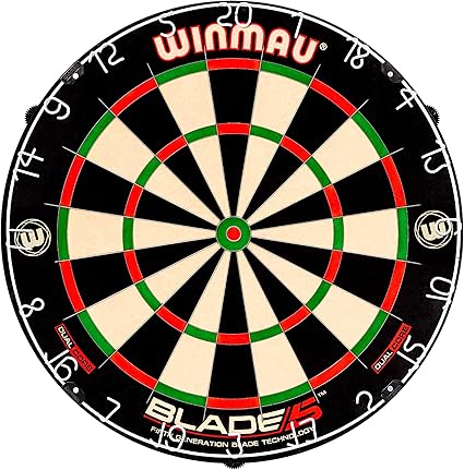 Amazon Com Winmau Blade 5 Dual Core Bristle Dartboard With Increased Scoring Area And Improved Dart Deflection For Reduced Bounce Outs Sports Outdoors
