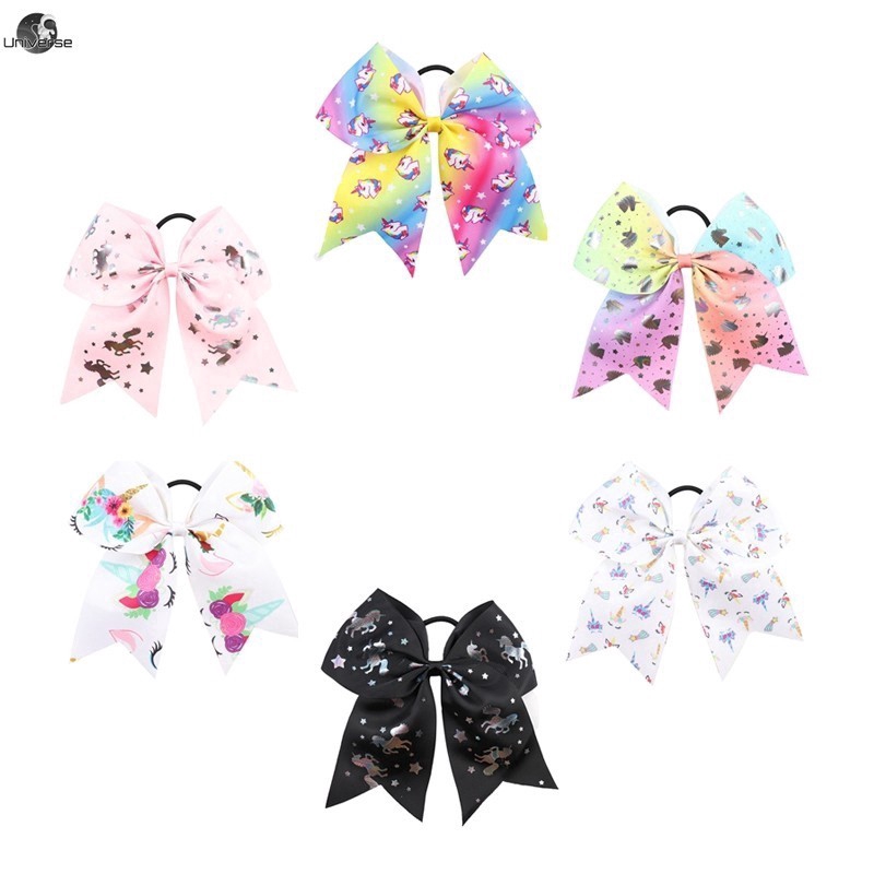 Large Double Bow Unicorn Cheerleader Hair Bow Bobble Elastic