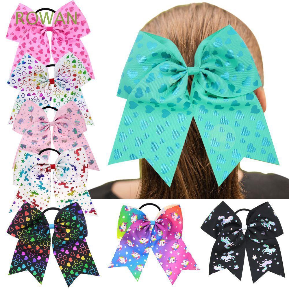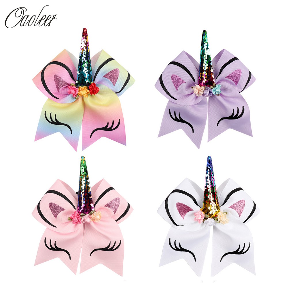 8 Packs Girls Unicorn Grosgrain Cheer Hair Bows With Elastic Band