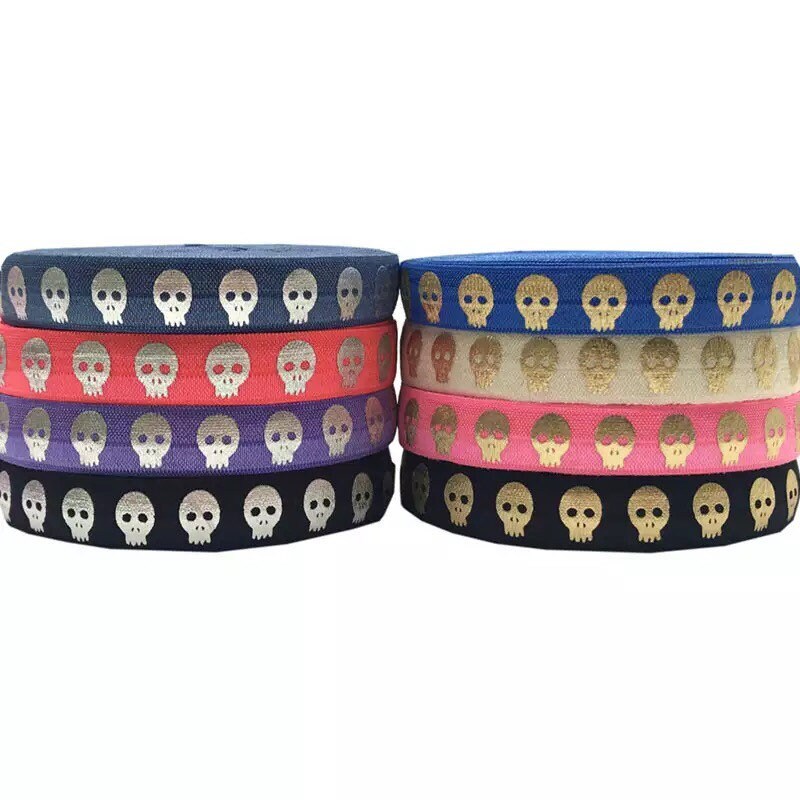 20 Yards 16mm Foil Printing Unicorn Elastic Ribbon Fold Over