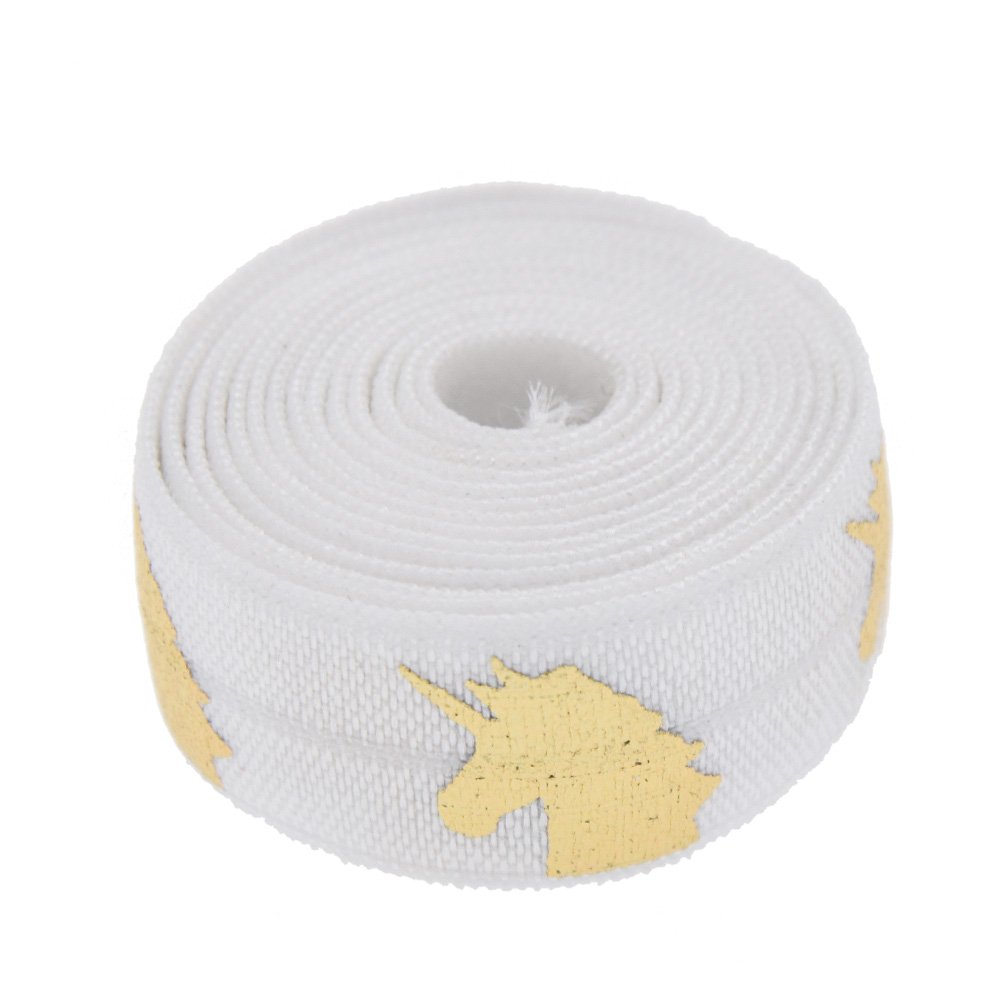 Amazon Com Hmr Foil Gold Unicorn Printed Fold Over Elastic Ribbon