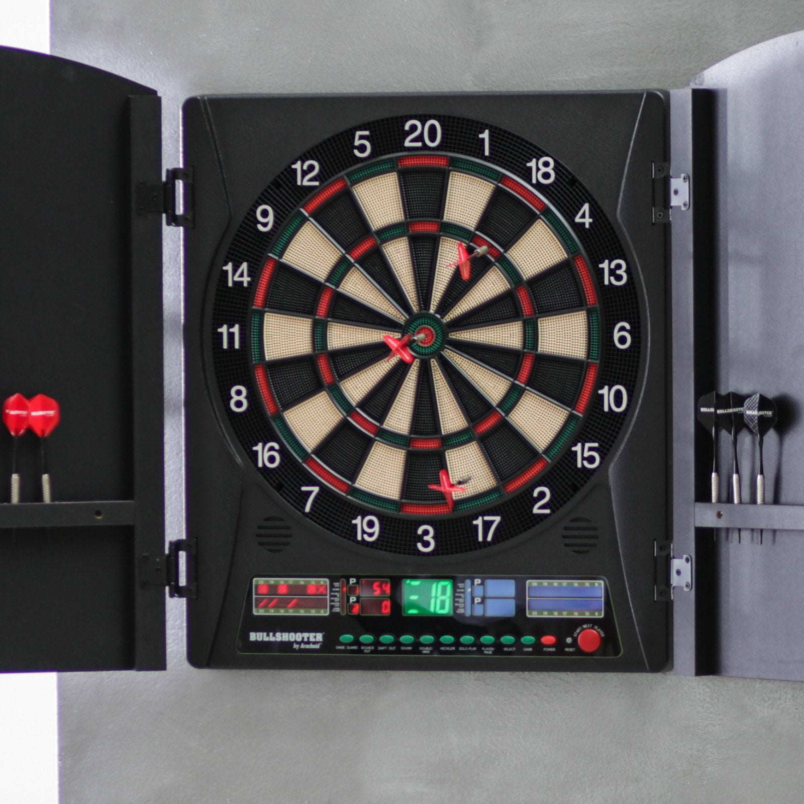 Bullshooter E Bristle 1000 Steel Soft Tip Electronic Dartboard Cabinet Set