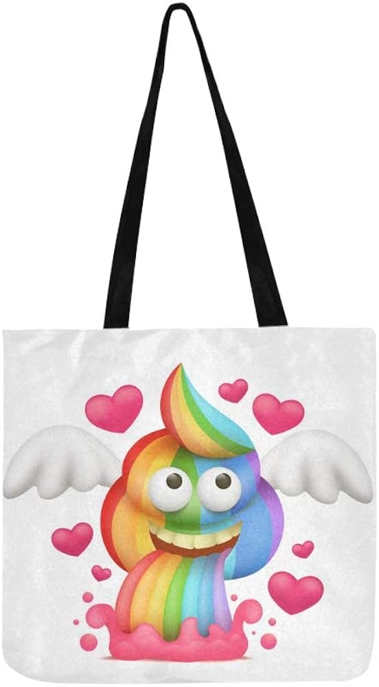 Amazon Com Cartoon Unicorn Rainbow Vomiting Poo Emoji Canvas Tote