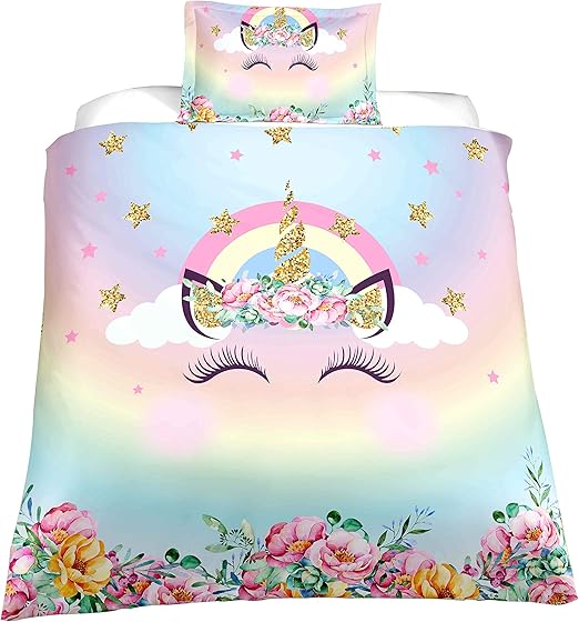 Kids Rainbow Unicorn Duvet Cover Pillowcase Bedding Set Single