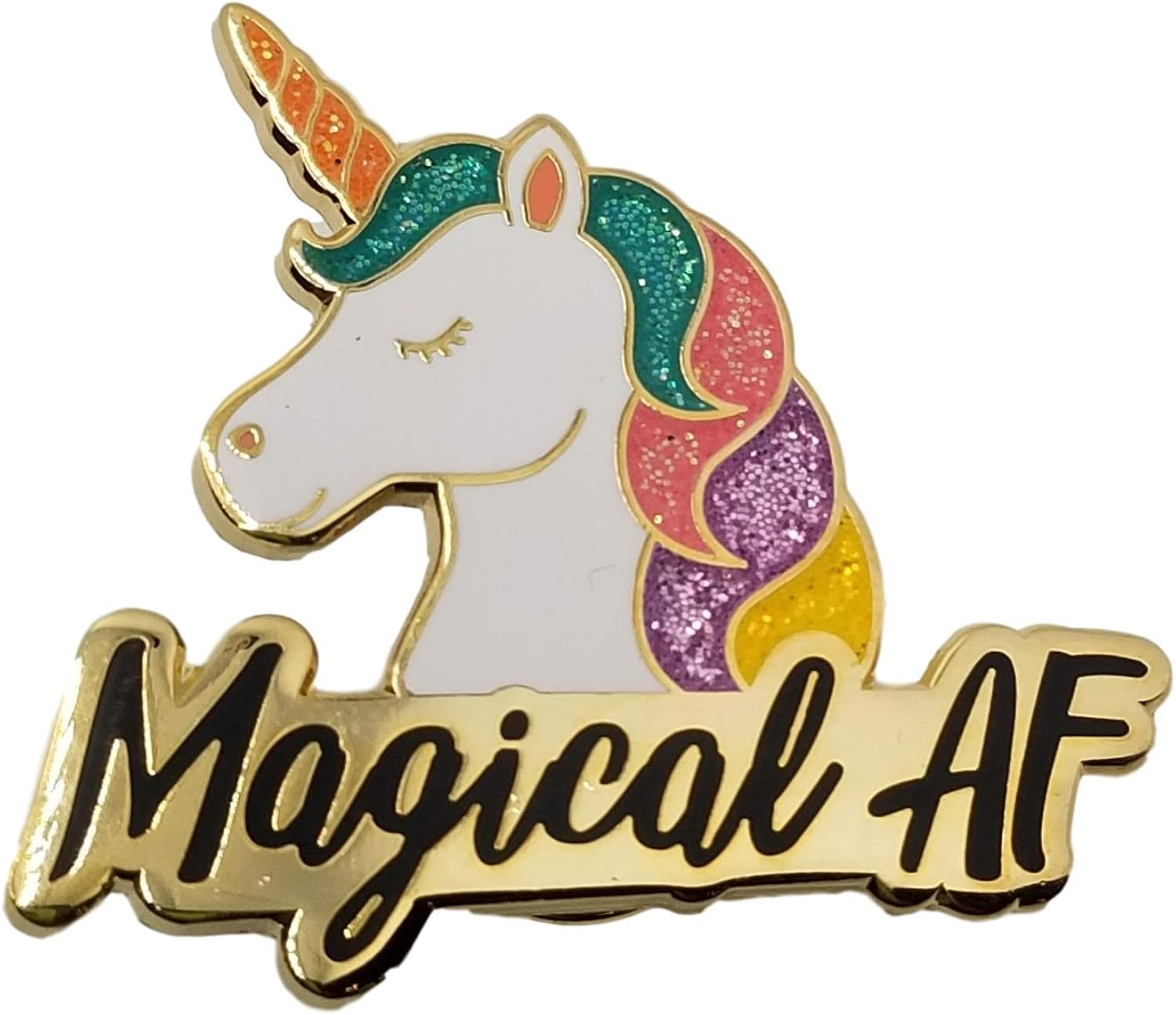 Amazon Com Stickeroonie Magical Af Unicorn Enamel Lapel Pin Cute Funny Glittery Rainbow Unicorn 1 4 Inches Clothing