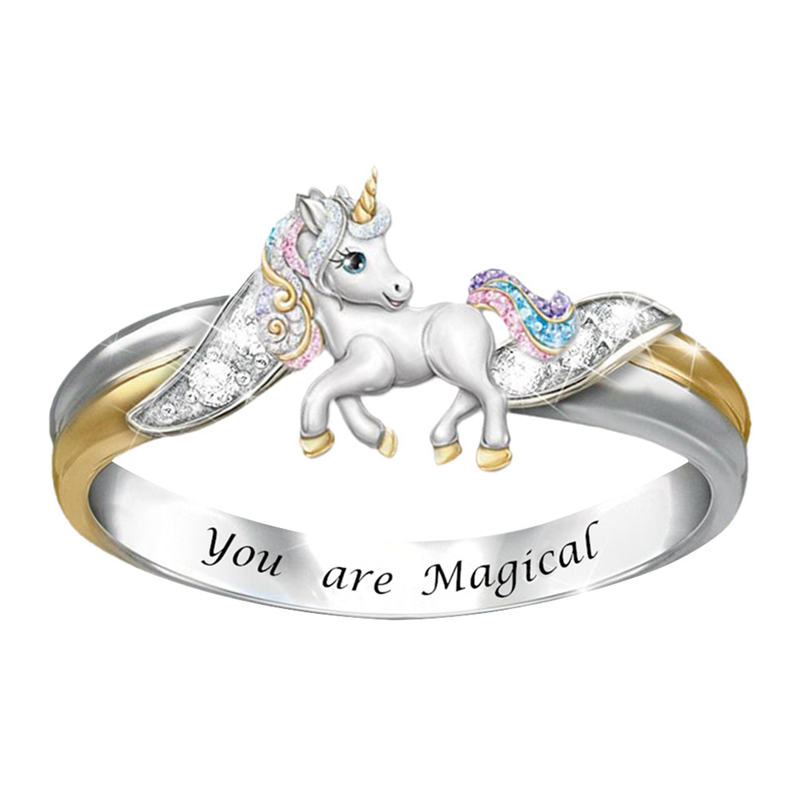 Fashion Rainbow Unicorn Ring Silver Gold Color Engagement Animal