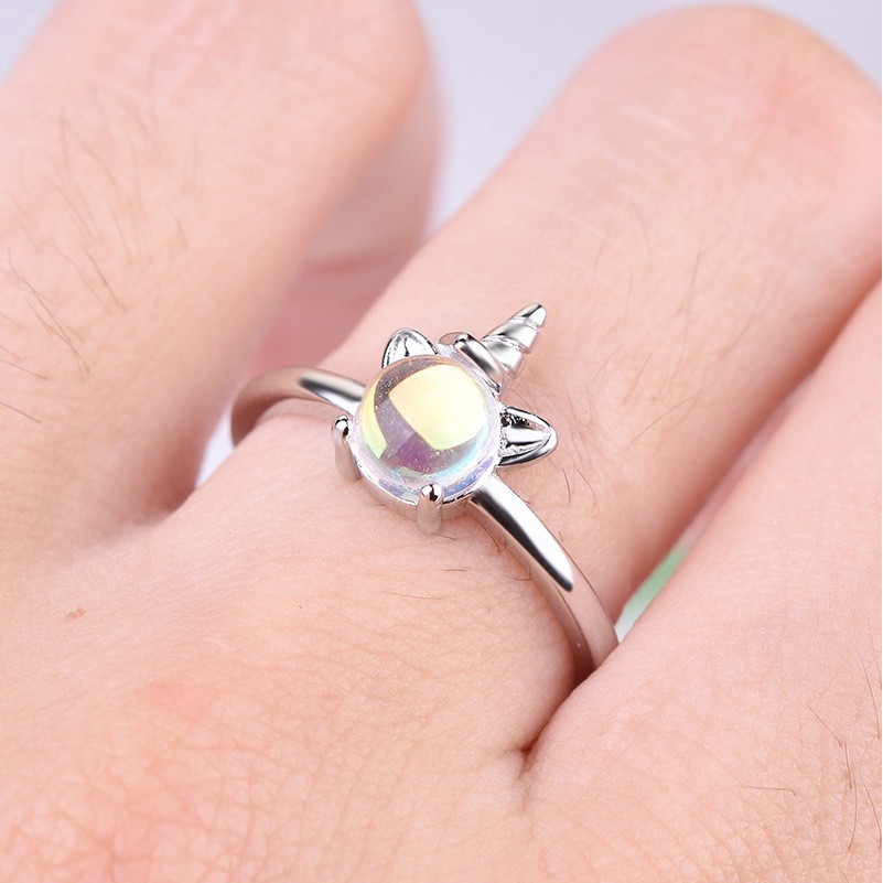 Alan Women Fashion New Style Unicorn Opening Colorful Moonstone