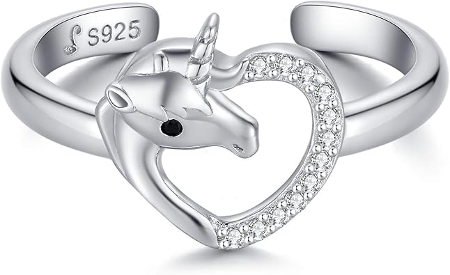Presentski Heart Unicorn Open Ring 925 Sterling Silver Cute Animal