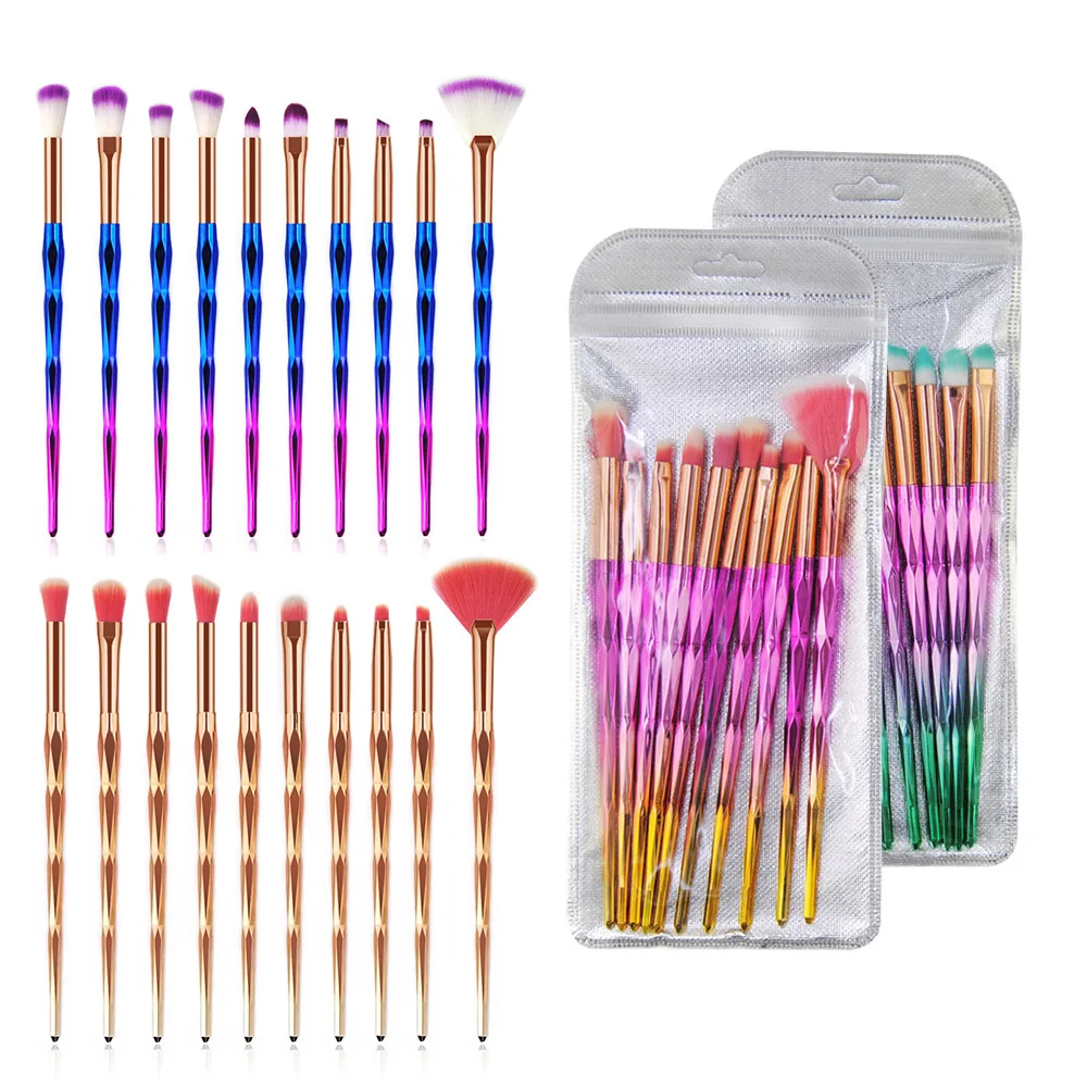 Lospu Hy 10pcs Diamond Cosmetic Makeup Brushes Set Foundation Eye