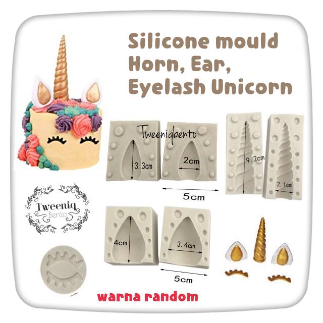 Cetakan Silikon Fondant Ear Horn Eyelashes Unicorn Telinga Tanduk