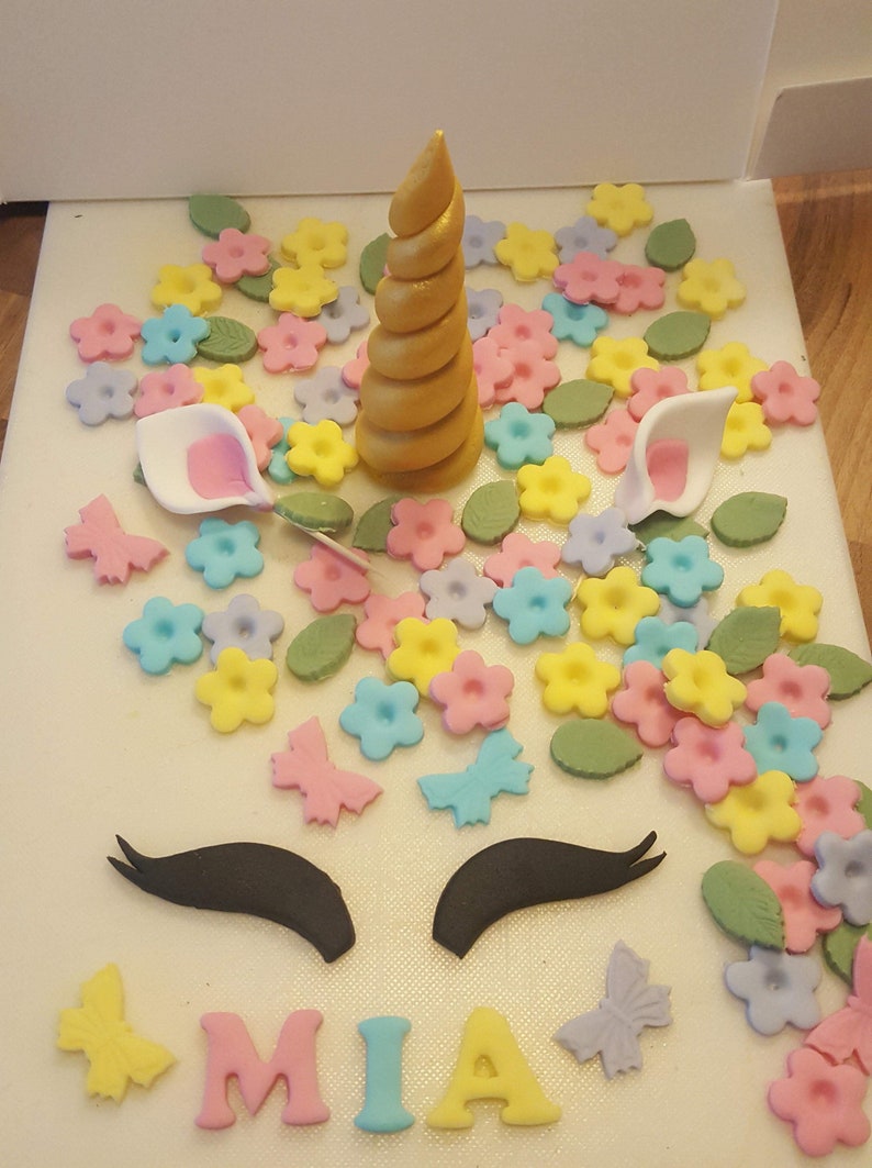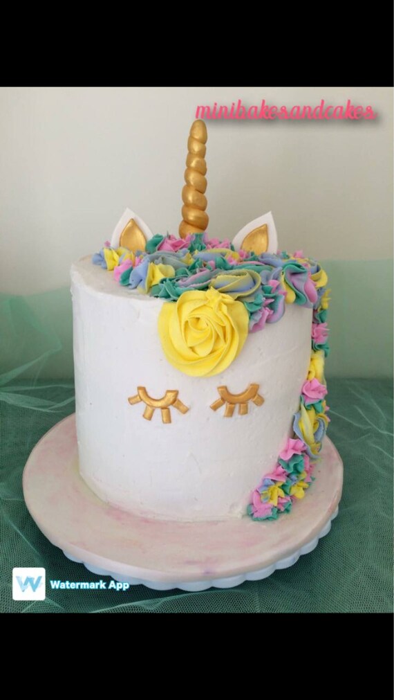 Unicorn Cake Topper Edible Horn Ears Eyes Flowers Etsy