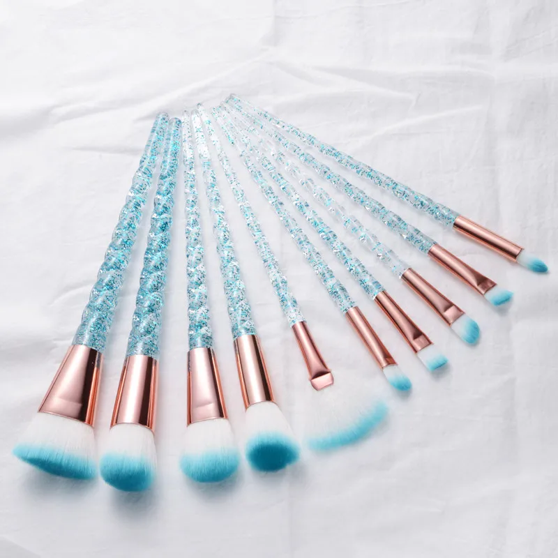 10pcs Unicorn Makeup Brushes Set Diamond Crystal Handle Blending