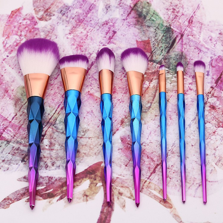 Beauty 7pcs Shinny Pink Purple Diamond Unicorn Makeup Brushes Set