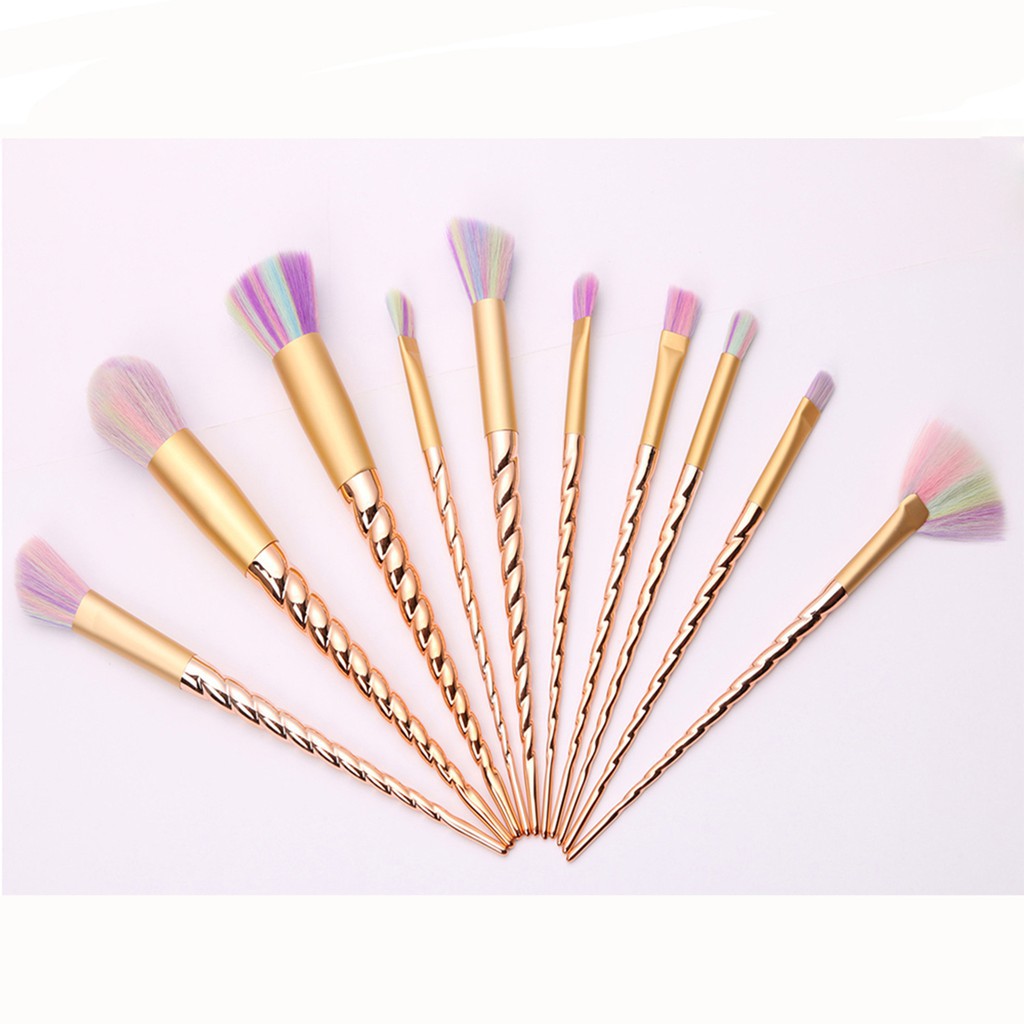 China Professional 10pcs Spiral Rainbow Unicorn Makeup Brushes Set