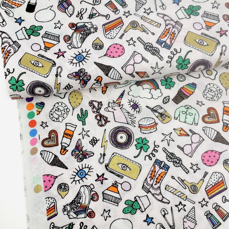 Gold Foil Unicorn Fabric By The Metre Cactus Rainbow Printed Etsy