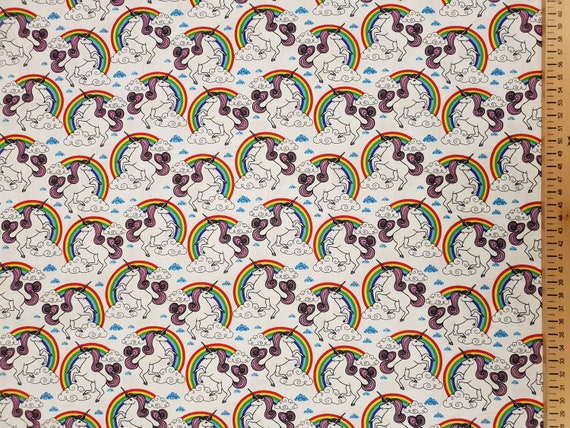 Unicorn Fabric Whtie 100 Cotton Material By Metre Magical Etsy