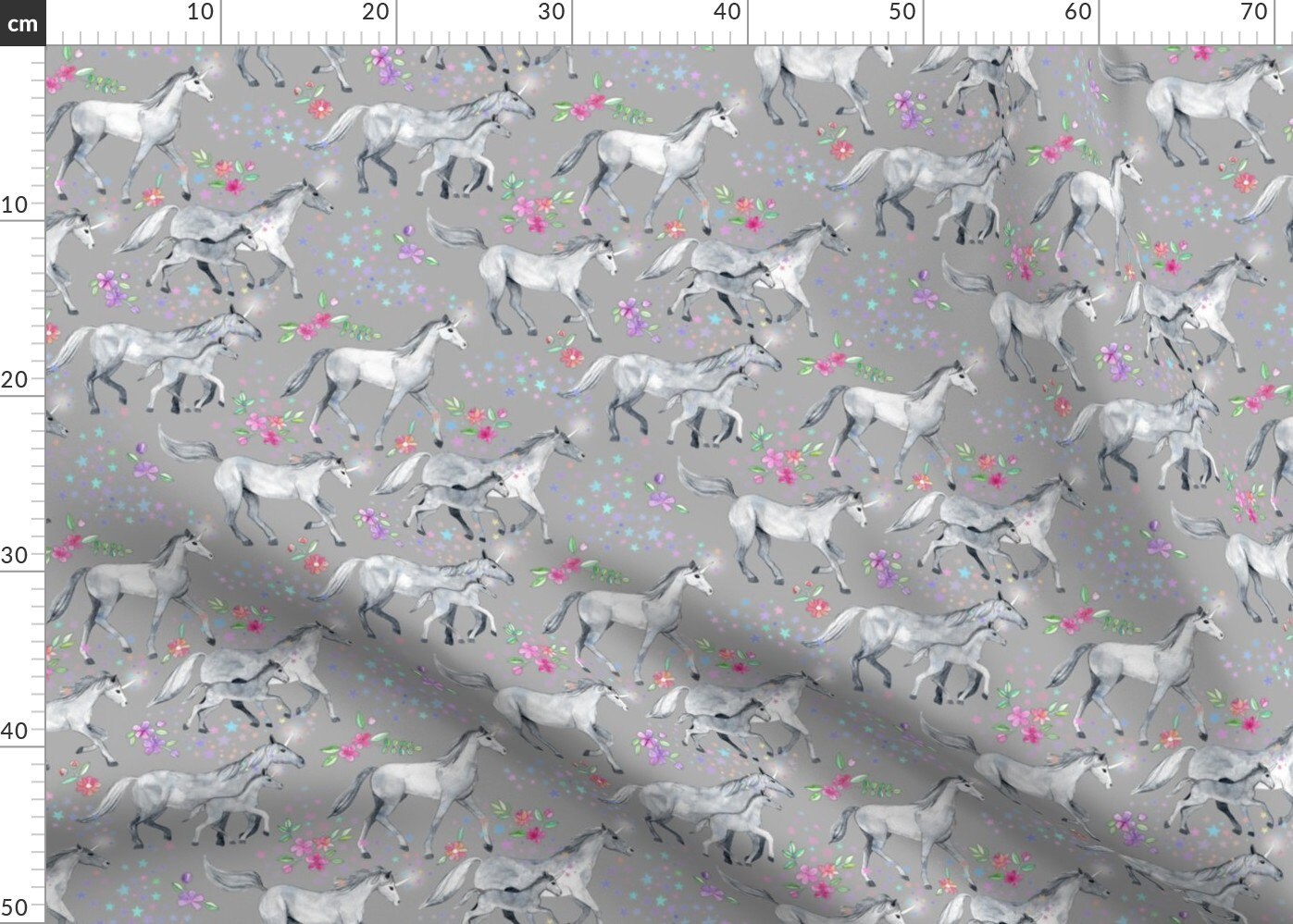 Unicorn Fabric Mom And Baby Unicorns With Stars On Soft Grey Etsy